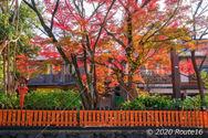 昔風の家並みと石畳、朱色の板塀、紅葉・桜・新緑、そして柳の木。これぞ京都という絵になるパーツがすべて揃っています。いつも結婚写真の前撮りや、モデル撮影の人たちでいっぱいです。