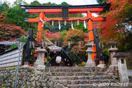 嵯峨野を散策しているときに「ちょっと休んでお茶でも飲みたいな」と思ったら、是非立ち寄っていただきたいのがこの鳥居本です。大きな鳥居の下にはいかにも古そうな茅葺屋根の茶店が静かにたたずんでいます。まるで時代劇に出てくる「街道筋の茶店」のような風情です。ここは「平野屋」さんといって、なんと四百年前からこの地で茶店を営んでいるとんでもない歴史をもった由緒ある「茶店」です。今では鮎料理をメインにしていて料亭のような感じでお店を営んでいらっしゃるようですが、店先の緋毛氈のかかった椅子に腰かけて団子とお茶で一休みなんてことも気軽にできます。旅行者にはうれしいお店です。